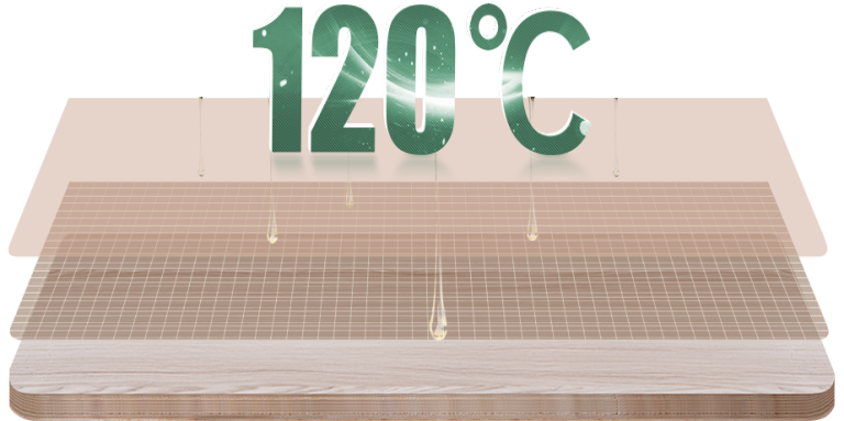 自制天然植萃胶,高于45%的固体含量,8道生产工序,品质天然、胶合力更强独创除甲醛技术,应用120C高温瞬间进化工艺,环保等级高于企标EO级