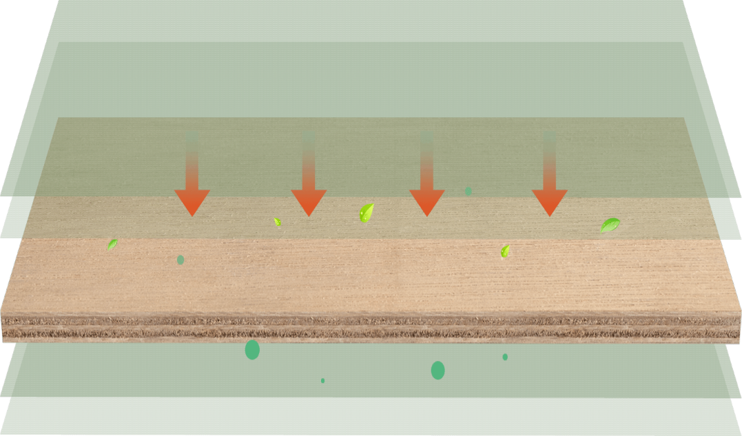 自主研发高分子生物粘合剂,通过覆盖作用有效阻止板材与周围环境进行能量交换,并起到吸热、散热和隔热的作用,有效抑制木材的热分解与燃烧